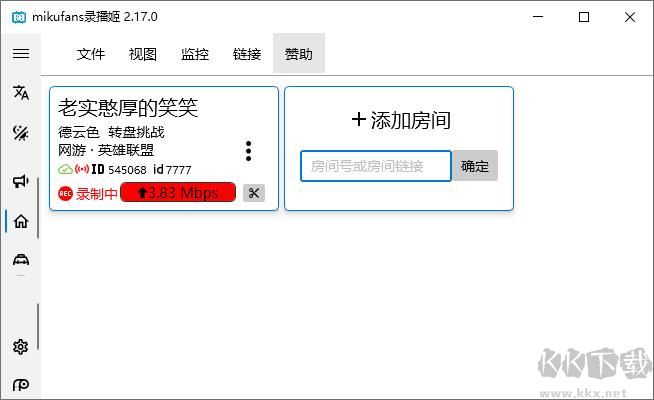 3、可通過界面左側(cè)菜單欄切換不同視圖。啟動工具并選定存放目錄后,將自動跳轉(zhuǎn)至房間列表頁。添加直播間時支持輸入房間號或鏈接,請注意不要錯填為用戶ID。