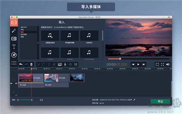 Movavi視頻編輯器兼容主流音視頻格式,包括MP4、MP3、MKV、AVI、FLV、VOB等。此外,可通過(guò)Windows平臺(tái)軟件將DV/HDV攝像機(jī)中的素材導(dǎo)入硬盤(pán),并轉(zhuǎn)換為任意所需格式。