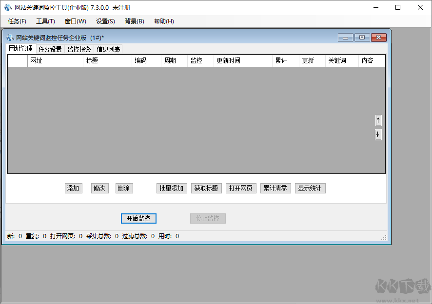 網(wǎng)站關(guān)鍵詞監(jiān)控工具電腦版擁有高效的網(wǎng)絡(luò)信息追蹤能力,程序包含網(wǎng)址管理、任務(wù)配置、鏈接篩選、報(bào)警機(jī)制與歷史日志五大核心模塊,可以對(duì)各類(lèi)網(wǎng)頁(yè)內(nèi)容進(jìn)行持續(xù)掃描,一旦發(fā)現(xiàn)預(yù)設(shè)詞匯,立即觸發(fā)通知并保存結(jié)果,就能夠從互聯(lián)網(wǎng)浩瀚數(shù)據(jù)中快速捕捉有價(jià)值的內(nèi)容,及時(shí)獲取精確情報(bào),特別適合金融從業(yè)者、媒體編輯等群體應(yīng)用,需要的朋友可以獲取安裝。