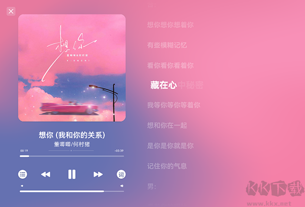 3、音樂播放界面也很精美,看起來就很舒適,歌詞、封面等基礎功能都有。