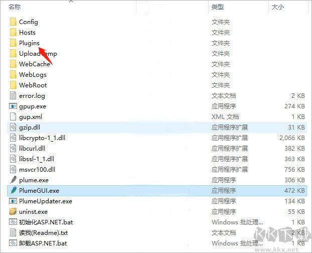 6、再次進(jìn)入程序目錄,找到并進(jìn)入 Plugins 文件夾,用編輯工具打開(kāi) Plume_FPM.ini 文件進(jìn)行編輯。