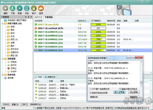 ImovieBox(網(wǎng)頁視頻下載器)是一款功能強(qiáng)大、操作簡(jiǎn)單的網(wǎng)頁視頻下載器,可以批量抓取下載MP4、FLV、AVI等格式的網(wǎng)頁視頻,能隨心所欲捕獲你喜歡的視頻和電影,只要正在觀看,就能立即下載。軟件操作簡(jiǎn)單、功能眾多,支持邊看邊下,為用戶帶來極致的網(wǎng)頁視頻下載觀看體驗(yàn)。還有自動(dòng)存到郵箱的功能,登錄后可添加任意個(gè)其他郵箱賬號(hào),添加的空間為擴(kuò)展空間,會(huì)自動(dòng)將多個(gè)賬號(hào)的空間合并成一個(gè)海量空間,供永久存儲(chǔ)數(shù)據(jù)使用,非常方便。需要的朋友快來下載試試吧!
