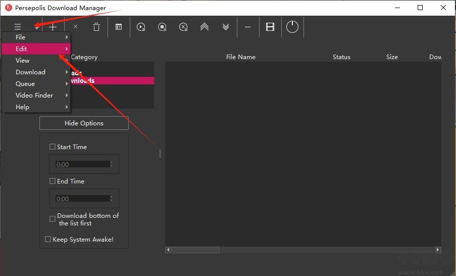 1、點擊Persepolis Download Manager左上角的設置菜單按鈕,選擇【Edit】-【Preferences】。