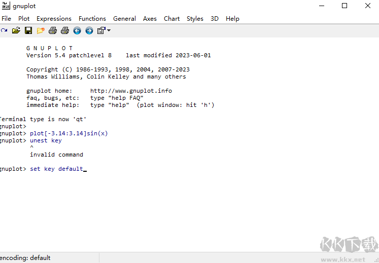 1、下載軟件壓縮包文件,點(diǎn)擊“gp548-win32-mingw.exe”根據(jù)提示完成安裝即可,點(diǎn)擊桌面“gnuplot 5.4 patchlevel 8”啟動(dòng)軟件,出現(xiàn)gnuplot圖形界面,如下圖所示: