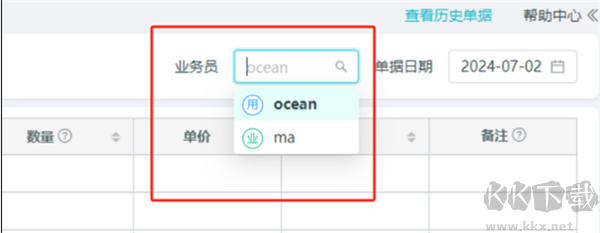 在選擇單據(jù)的業(yè)務(wù)員時,可以選擇用戶或業(yè)務(wù)員。