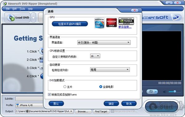 6、提供 40 余種視頻輸出格式,還能直接從 DVD 中提取音頻文件。
