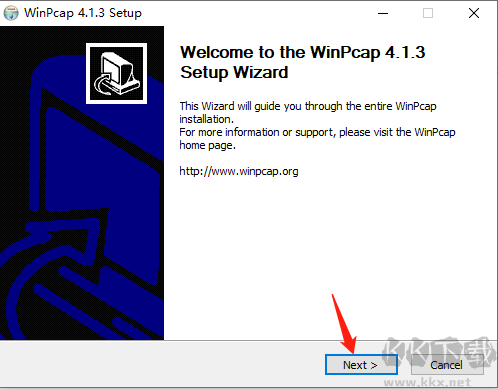 2、下載完成后解壓運(yùn)行WinPcap_4_1_3.exe安裝文件,就可以進(jìn)入到下圖中的安裝界面,我們點(diǎn)擊“Next”繼續(xù)安裝。