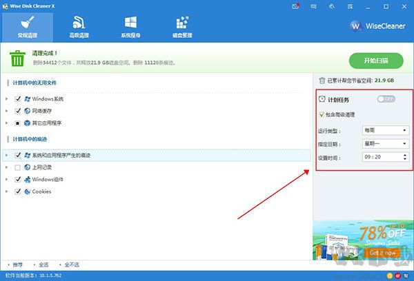 Wise Disk Cleaner 能夠清除臨時文件、日志、索引數(shù)據(jù)、備份文件等各類垃圾,幫助釋放硬盤容量。
