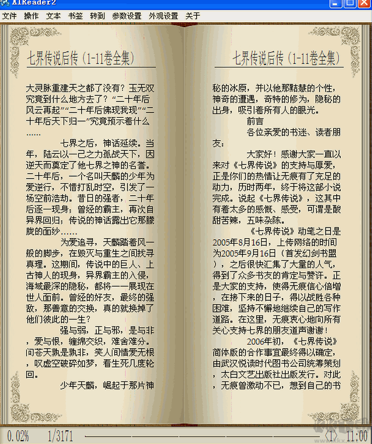 1、程序無需安裝。雙擊即可運行。打開軟件后,我們可以打開任意書籍。什么格式都可以,畢竟是全能小說閱讀器嘛。
