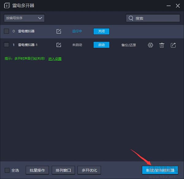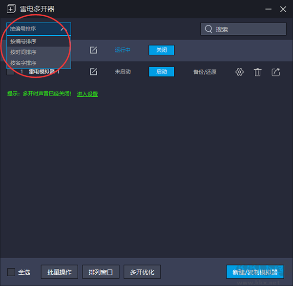 支持按編號(hào)、時(shí)間或名稱(chēng)排序,可通過(guò)名稱(chēng)搜索特定模擬器。