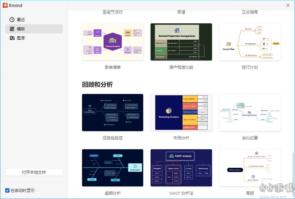 啟動(dòng) XMind,可選用默認(rèn)樣式立即開(kāi)始繪制。