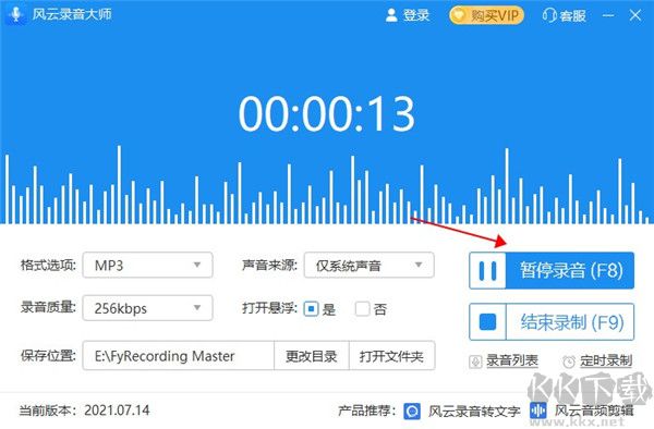 2、可點擊暫停、繼續(xù)以控制錄制進程。