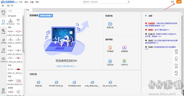 2、支持注冊(cè)個(gè)人賬戶(hù)登錄軟件,進(jìn)行電路設(shè)計(jì)與電子元件采購(gòu)