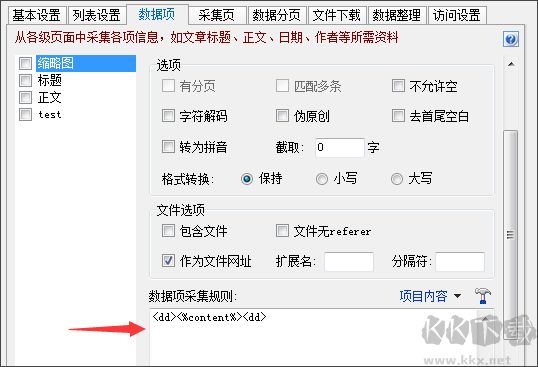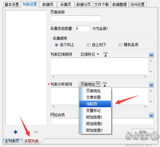 2、需為“縮略圖數(shù)據(jù)項(xiàng)”設(shè)置采集規(guī)則