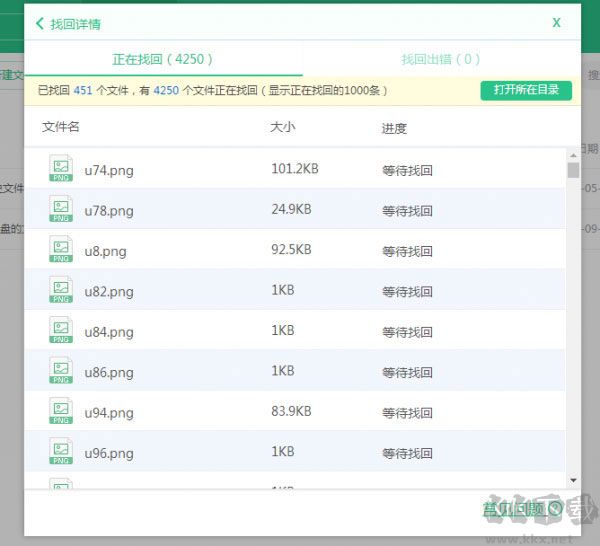 4、若文件夾內(nèi)文件數(shù)量較多,建議分組操作,每批最多200個(gè)文件??牲c(diǎn)擊頂部“找回詳情”查看進(jìn)度,并通過“打開所在目錄”定位已找回的文件。