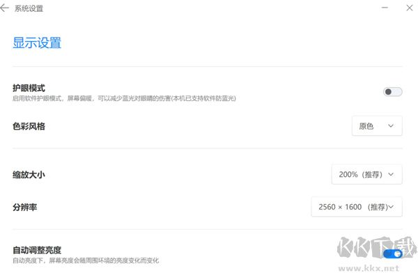 2、進(jìn)入系統(tǒng)顯示設(shè)置,可開啟護(hù)眼模式并調(diào)整顯示參數(shù);