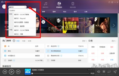 2、在播放器界面搜索欄中輸入喜愛(ài)的歌曲名稱(chēng);