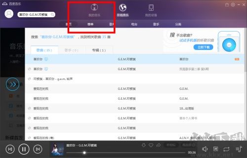 3、從搜索結(jié)果列表中選擇目標(biāo)歌曲并點(diǎn)擊播放;