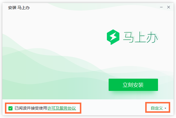 下載馬上辦軟件,解壓壓縮包,雙擊.exe文件,彈出界面,勾選【接受服務(wù)協(xié)議】,