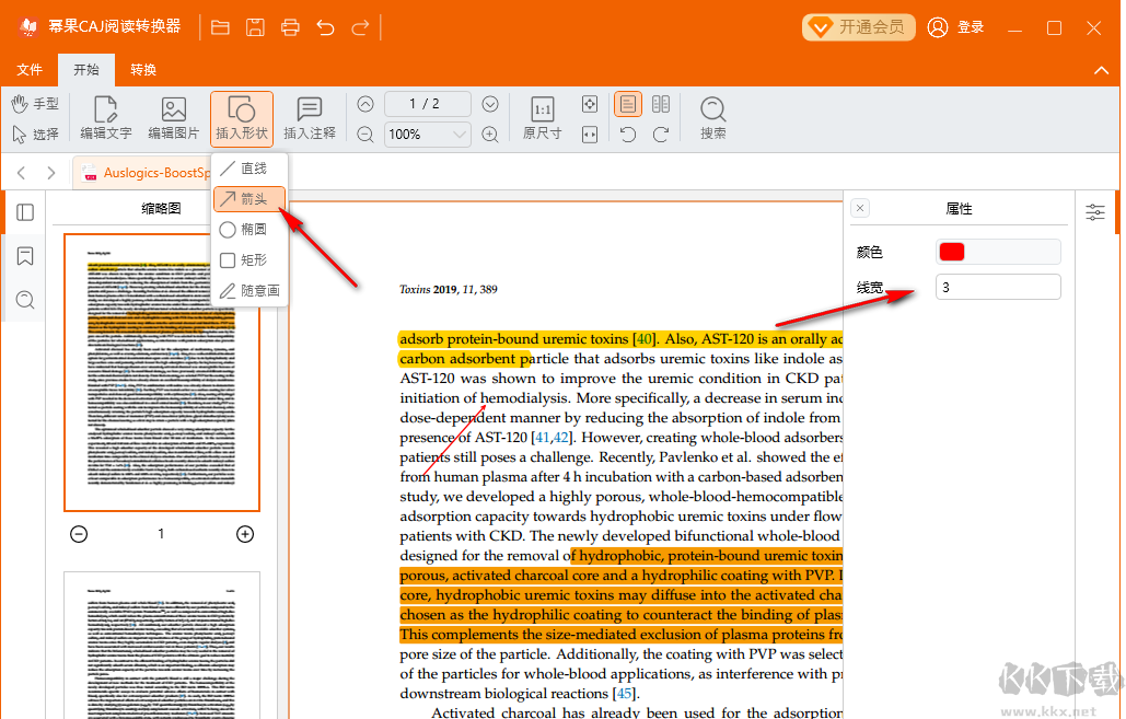 7、配備多種圖形標注工具,閱讀時可插入箭頭、直線、矩形框等形狀,輔助標記重要內(nèi)容,提升閱讀專注度。