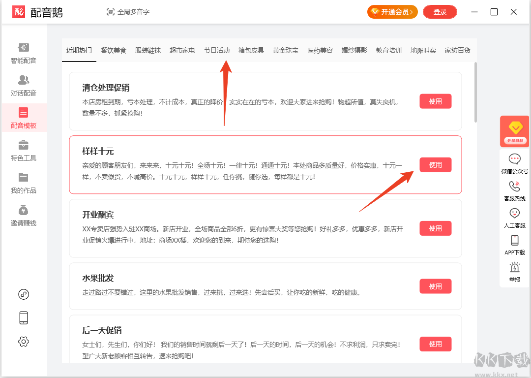 3、廣告模板:涵蓋促銷、叫賣、餐飲、產(chǎn)品推廣等多個(gè)行業(yè)模板;