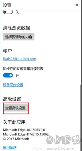 3、進(jìn)入Microsoft Edge瀏覽器設(shè)置界面,找到并點(diǎn)擊“查看高級設(shè)置”選項。