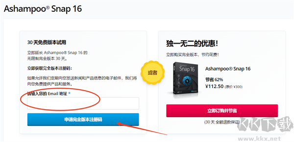 4、瀏覽器頁面中輸入您的郵箱,點擊申請完全版本注冊碼