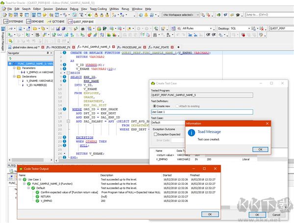 該工具用于編寫(xiě)、編譯、測(cè)試和調(diào)試存儲(chǔ)過(guò)程與觸發(fā)器。Toad 提供語(yǔ)法高亮、錯(cuò)誤提示等實(shí)用功能,并可在彈出提示中顯示表名、列名及 Oracle 內(nèi)置函數(shù)。與多數(shù) PL/SQL 工具不同,Toad 支持在單一文件中管理多個(gè)數(shù)據(jù)庫(kù)對(duì)象,允許編譯單個(gè)對(duì)象、批量編譯、編譯至光標(biāo)位置或從光標(biāo)處開(kāi)始編譯。當(dāng)運(yùn)行出錯(cuò)時(shí),執(zhí)行會(huì)暫停在異常語(yǔ)句處。用戶可通過(guò)快捷鍵或預(yù)設(shè)模板快速輸入代碼,也可根據(jù)習(xí)慣創(chuàng)建個(gè)性化模板。編輯過(guò)程中支持添加書(shū)簽、注釋切換、SQL 格式化等操作,提升編碼體驗(yàn)。