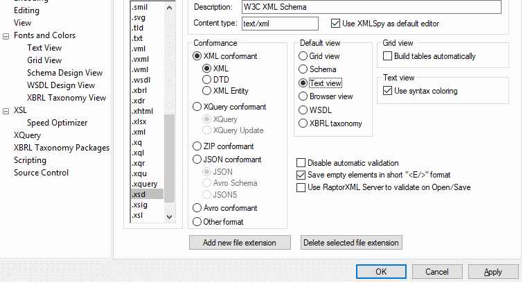 默認情況下, 將在 "架構(gòu)" 視圖中打開具有. xsd 擴展名的所有文檔??梢栽?"選項" 對話框中更改任何類型的文檔的默認打開視圖?,F(xiàn)在讓我們?yōu)? xsd 文檔執(zhí)行此項。
