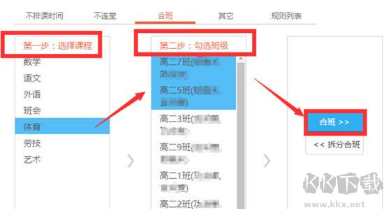 使用合班課功能進(jìn)行安排,如1班2班一起上體育,則在合班課設(shè)置中將1班2班體育課設(shè)為合班課,手動(dòng)或自動(dòng)排課均按此處理。