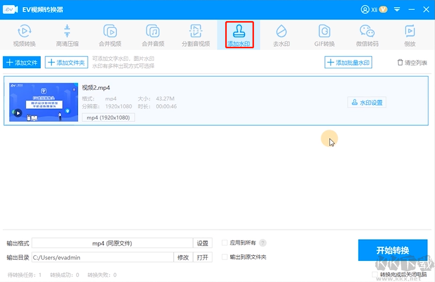 EV視頻轉換器添加水印步驟