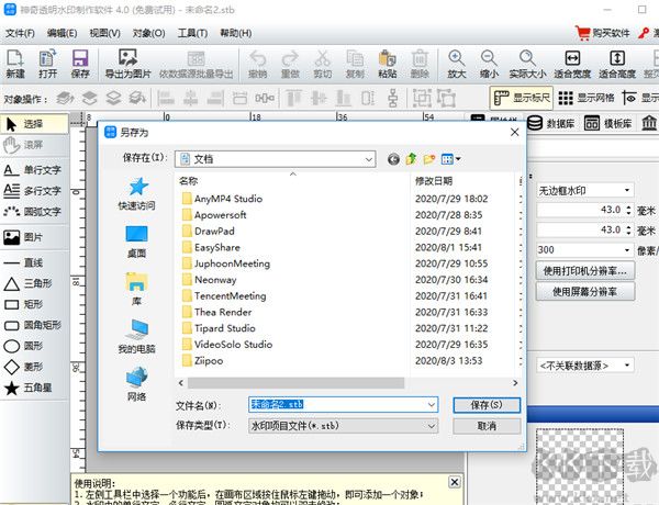 4、點(diǎn)擊保存按鍵會(huì)彈出文件保存窗口,水印編輯完成后可點(diǎn)擊保存按鍵,接著輸入文件名稱,再點(diǎn)擊保存按鍵完成水印保存。