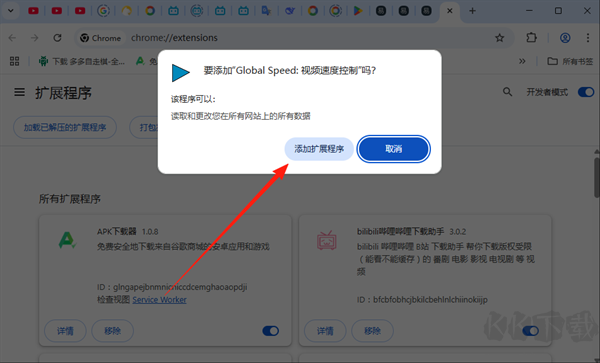 5、在彈出的提示框中點(diǎn)擊“添加擴(kuò)展”即可。