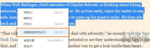 5、一鍵收藏:選中內(nèi)容后右鍵即可保存至傲游筆記。