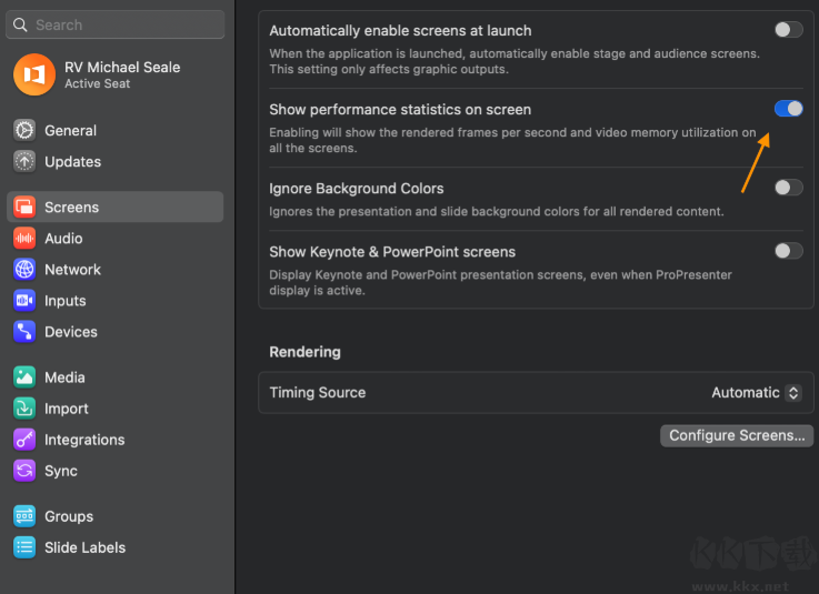 完成屏幕配置后,可通過(guò)“外觀”自定義各屏幕所顯示的內(nèi)容。若遇到性能問題,可進(jìn)入“設(shè)置”→“屏幕”選項(xiàng)卡,勾選“在屏幕上顯示性能統(tǒng)計(jì)信息”,畫面將實(shí)時(shí)呈現(xiàn)幀率等運(yùn)行數(shù)據(jù)。注意正式演示前應(yīng)關(guān)閉該功能,避免文字信息對(duì)外展示。