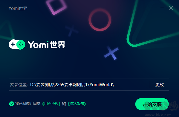 2、勾選“我已閱讀并同意用戶協(xié)議”,可通過(guò)“更改”自定義安裝路徑,點(diǎn)擊“開(kāi)始安裝”;