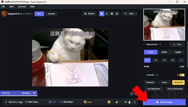 3、待處理完成后點(diǎn)擊右下角的Save Image即可保存處理后的圖片