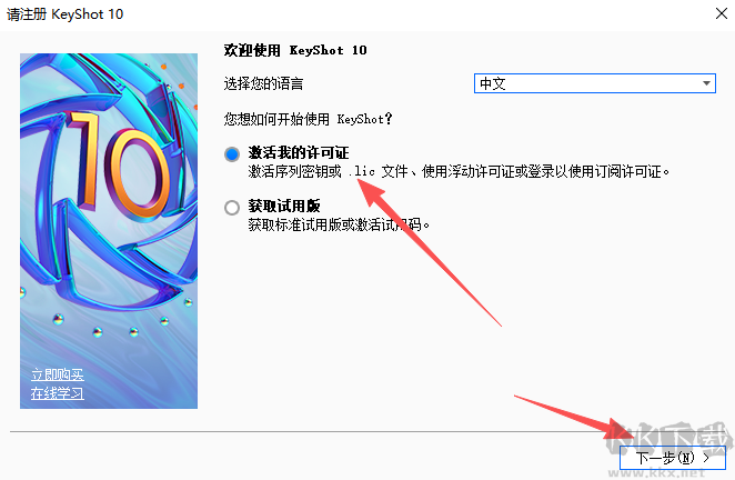 12、打開KeyShot,勾選“激活我的許可證”,點擊“下一步”;