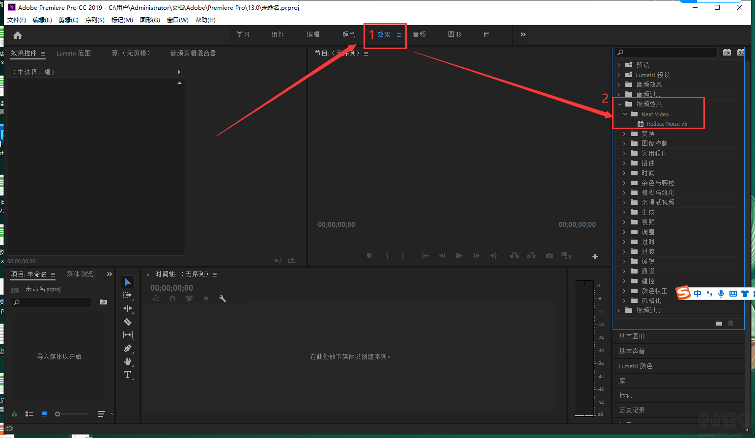 1、在 Premiere 中打開(kāi)項(xiàng)目,進(jìn)入“效果”面板 → “視頻效果”,即可找到 Neat Video Pro 插件;