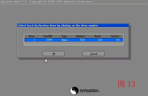 4、接下來是選擇硬盤,單硬盤用戶一般選大的就可以了,多硬硬盤的朋友一般選擇磁盤1.通常是最上面一個(gè),點(diǎn)擊“OK”