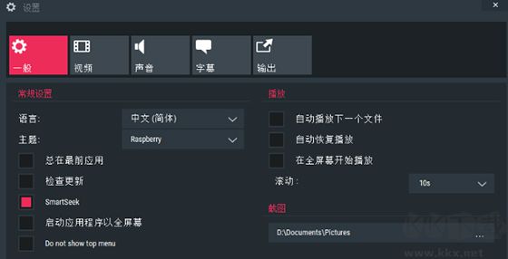8、在設(shè)置面板中,可根據(jù)個(gè)人偏好調(diào)整主題樣式、播放模式及截圖保存路徑等。
