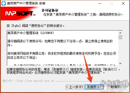 2、閱讀許可協(xié)議,點(diǎn)擊“我接受”。
