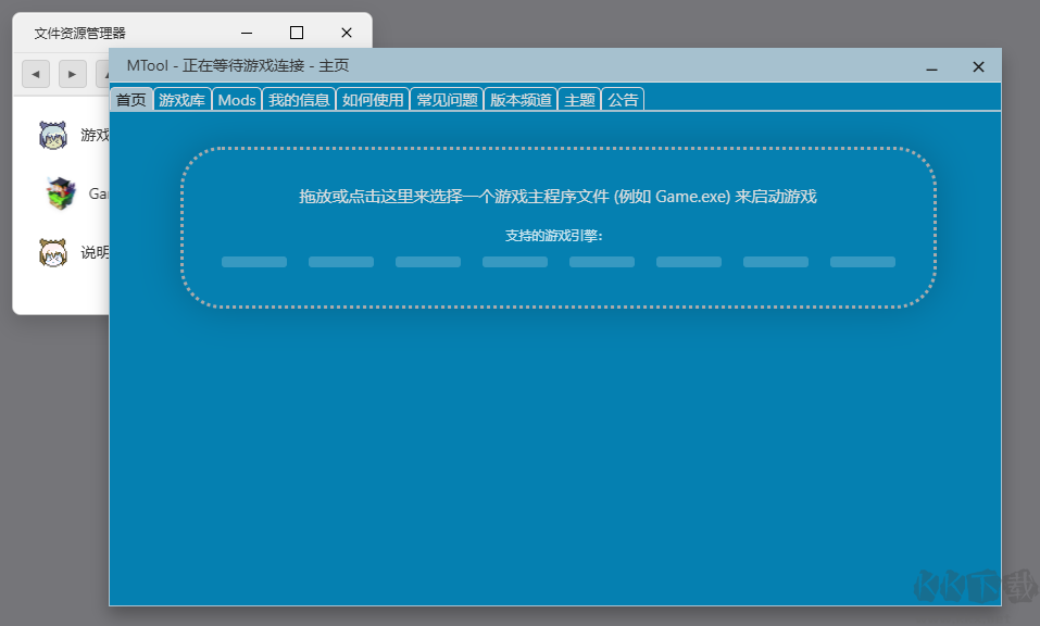 1、將游戲主程序拖入Mtool窗口,工具將自動識別并關(guān)聯(lián)游戲。