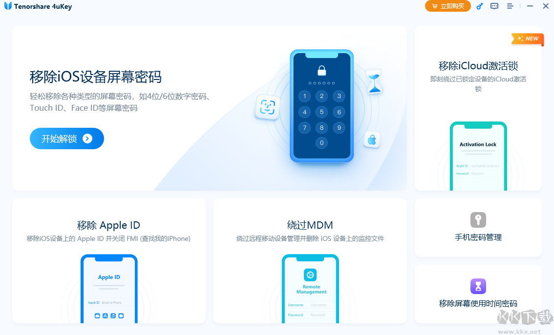 Tenorshare 4uKey 是一款專注于 iOS 設(shè)備解鎖的實用工具,能夠在用戶遺忘密碼的情況下快速移除設(shè)備中的 Apple ID,并在幾分鐘內(nèi)解除 iPhone 和 iPad 的鎖屏鎖定。軟件還支持修復(fù)因多次密碼錯誤而停用的 iPhone 和 iPad,不依賴 iTunes 或 iCloud,也可以在無密碼狀態(tài)下關(guān)閉“查找我的 iPhone”功能。如果你希望高效、安全地解除設(shè)備鎖定,Tenorshare 4uKey 是一個值得考慮的解決方案。