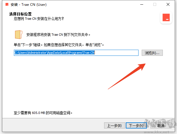2、可點擊“瀏覽”更改安裝路徑,確認后繼續(xù)下一步;