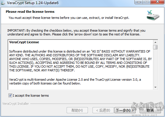 2、閱讀許可協(xié)議,勾選“我接受許可條款”,點擊下一步;