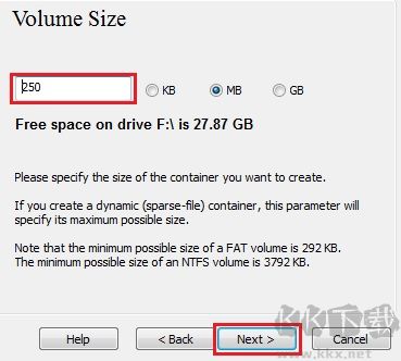 8、設定加密卷大小,輸入后點擊下一步。
