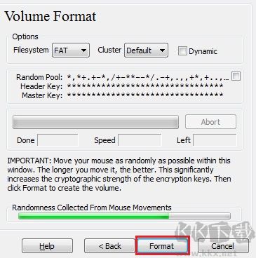 10、隨機移動鼠標以增強密鑰生成隨機性,直至進度條變綠后點擊“格式化”。