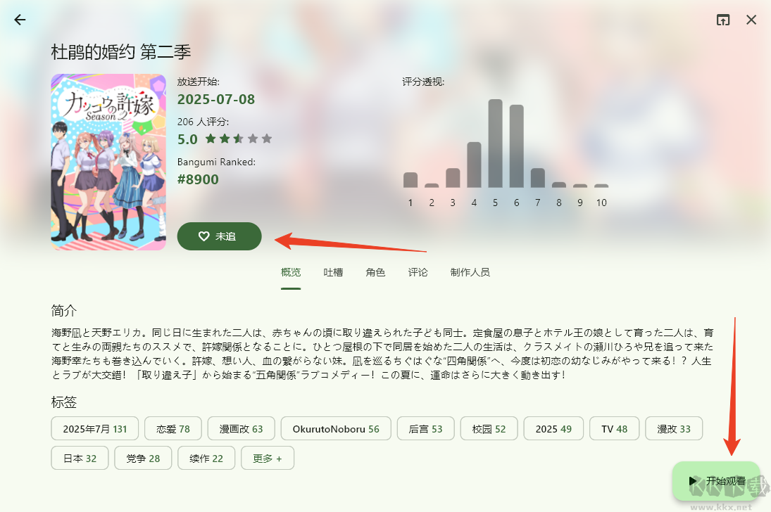 1、番劇追蹤: 使用者可將喜愛的動畫加入追蹤列表,并監(jiān)控觀看進展。