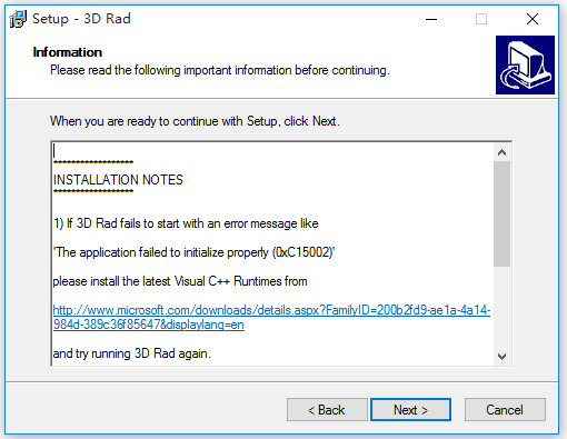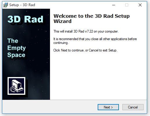 從本站下載3D Rad,解壓壓縮包,雙擊.exe文件,彈出界面,根據(jù)向?qū)Р僮鳎?/p>